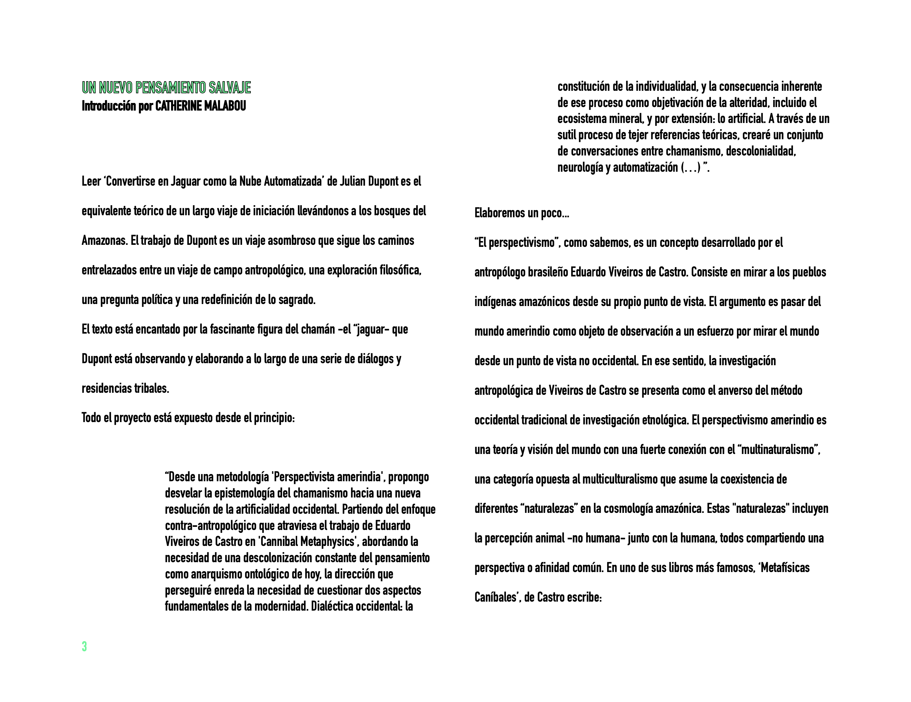 1 Eduardo Viveiros de Castro, Cannibal Metaphysics, translated and edited by Peter Skafish, Mineapolis: Univocal, 2014, p. 71.