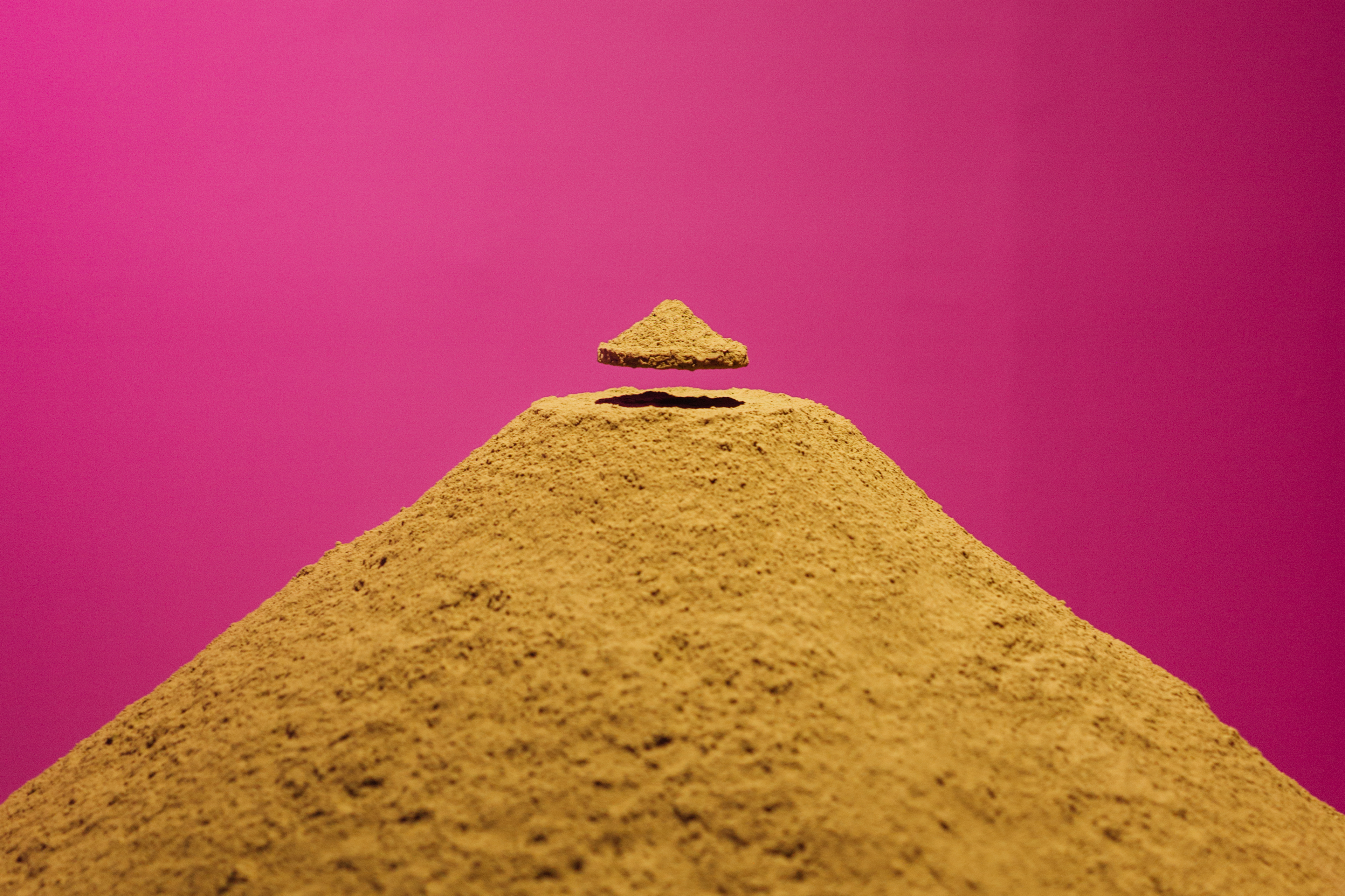 This sculpture contrasts the Western perspective on artificiality, closely tied to recent advances in information technology like artificial intelligence, with Indigenous perspectivism. The piece features a heap of MAMBE powder supporting a levitating magnetic disc. MAMBE is a sacred substance in many Indigenous Amazonian cultures, used in rituals to connect with spirits, while magnetic resistance is essential for electronic circuits and artificial intelligence hardware. The installation deploys the interaction between MAMBE powder and magnetic levitation, treating these two technologies as equivocity (multinatural perspectivism implies a form of conversation that inhabits difference as what transverses all bodies, implying that the relation between two different bodies is the different ways of not understanding each other as what is shared; to start a conversation). It questions the anthropocentric view of artificiality, shifting the focus to "the who of things" and fostering connections with mineral, plant, and non-human intelligences. The goal is to break free from the colonial mindset of objectifying otherness.